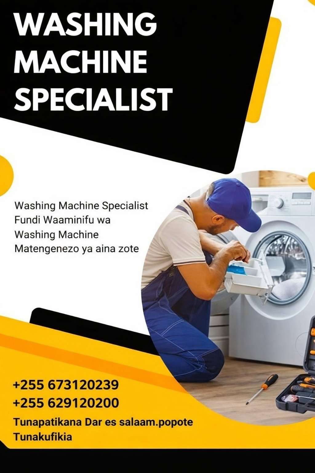 Tunatengeneza Washing machine za aina zote. Tunafika popote ulipo. Piga 0673120239. 0629120200